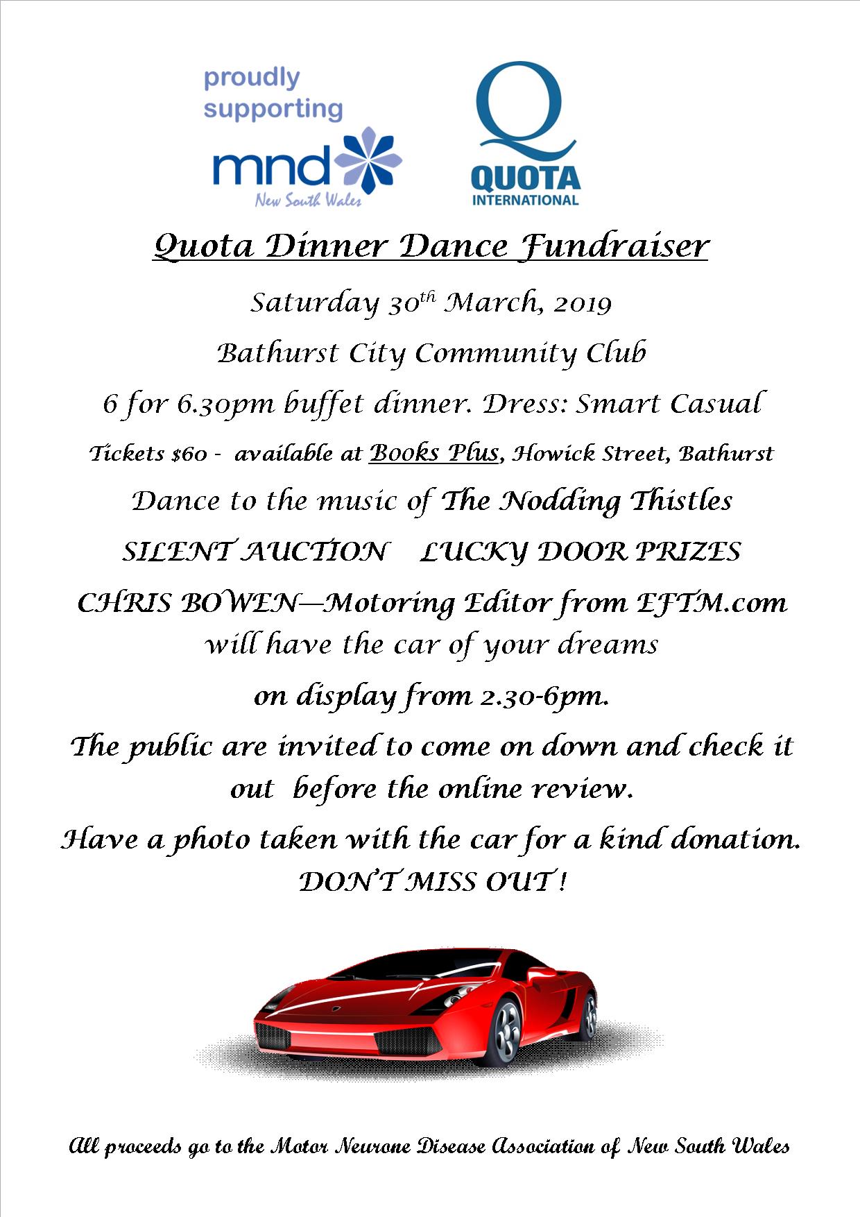 A Buffet Dinner followed by a Bush Dance, music courtesy of The Nodding Thistles, hosted by Quota International Bathurst. Silent auction with a variety of prizes. For details contact Annette Welch at This email address is being protected from spambots. You need JavaScript enabled to view it. or 0417 063 136.